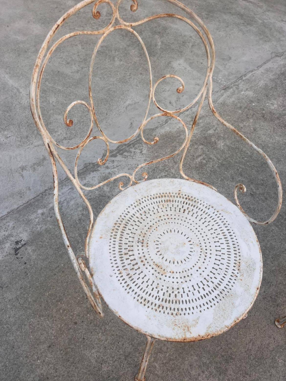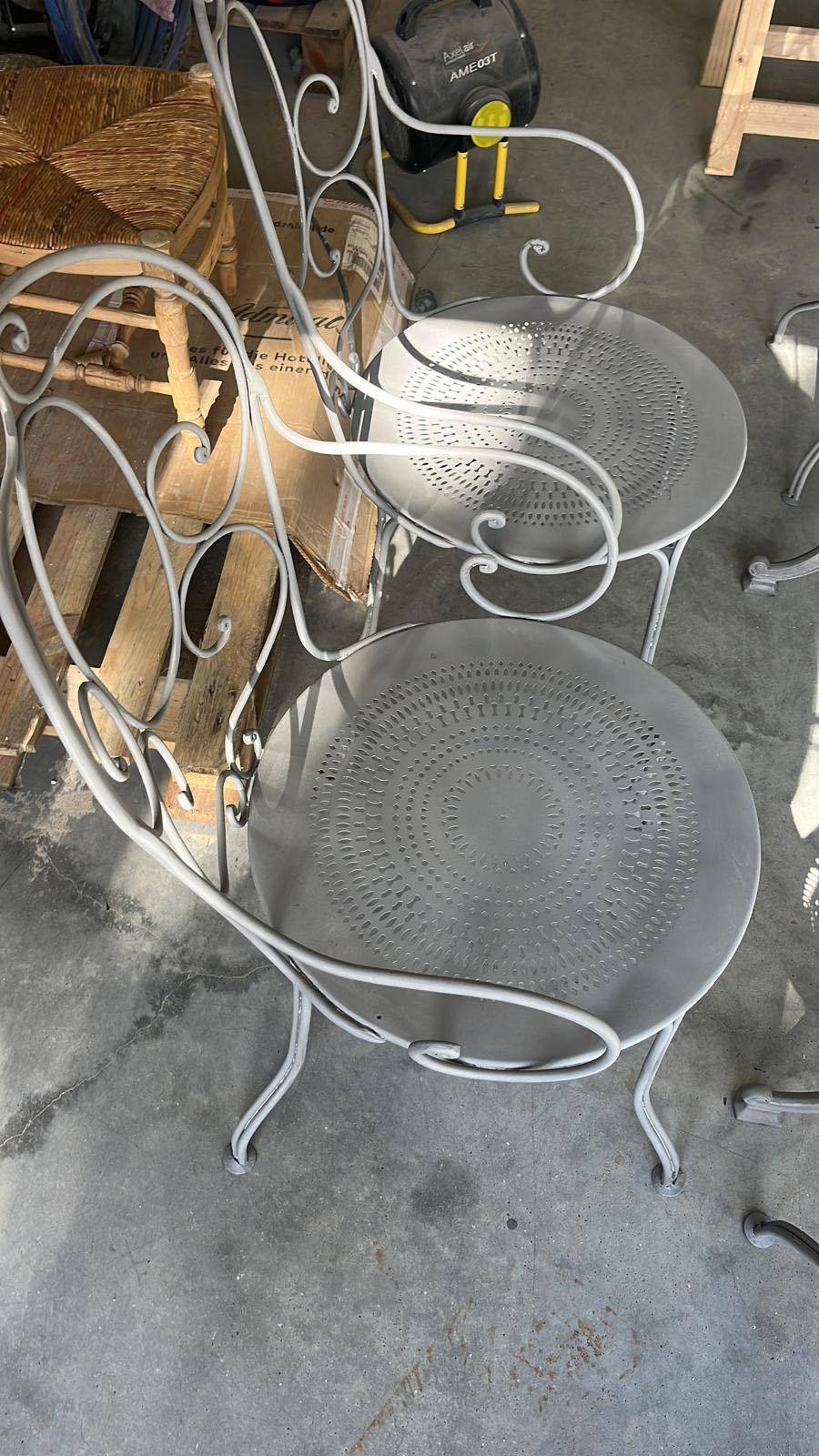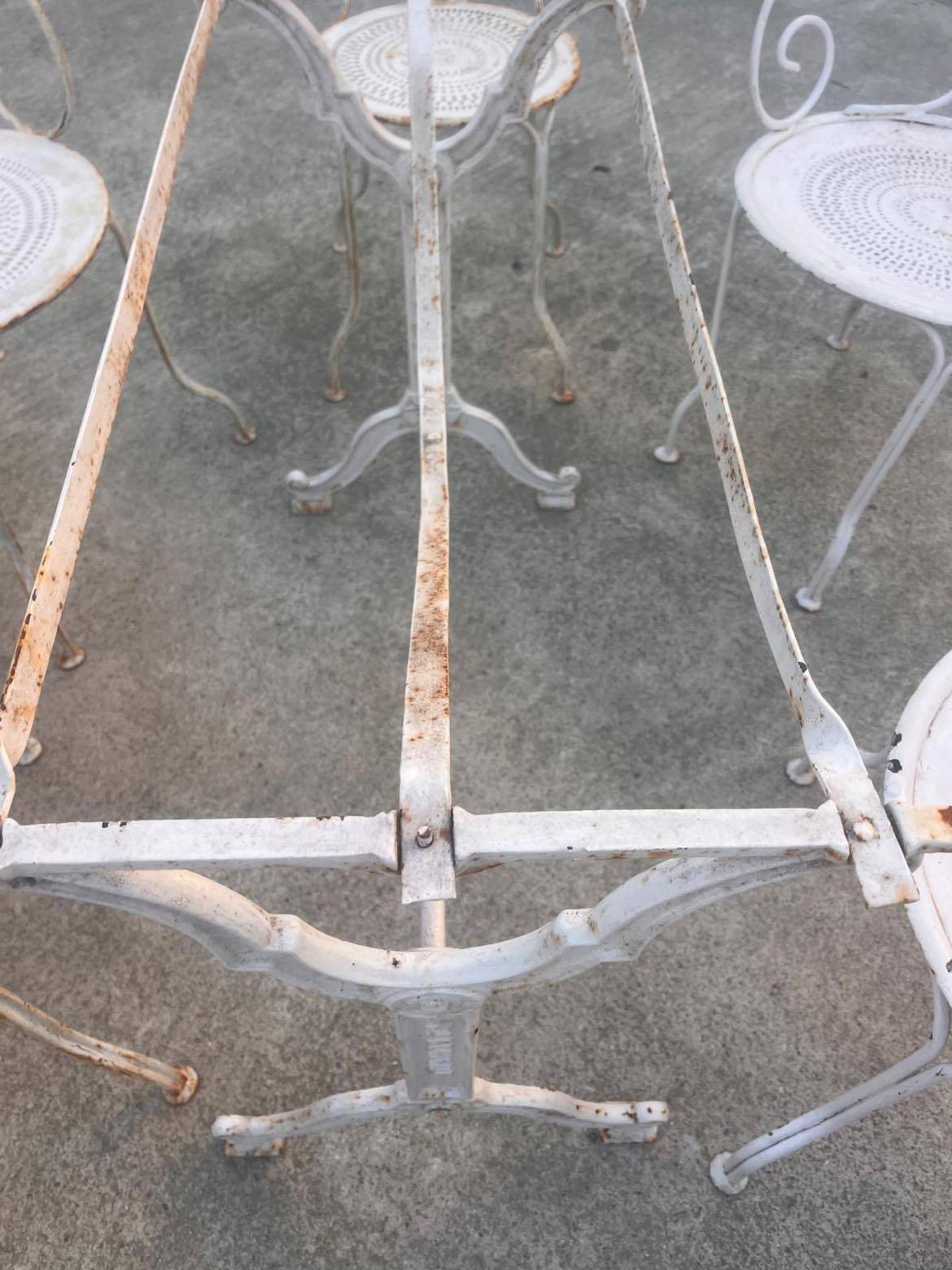 Ce salon de jardin comportant 6 chaises et une table en ferraille a été rénové par la technique du sablage afin de retirer les anciennes couches de peinture et vernis.